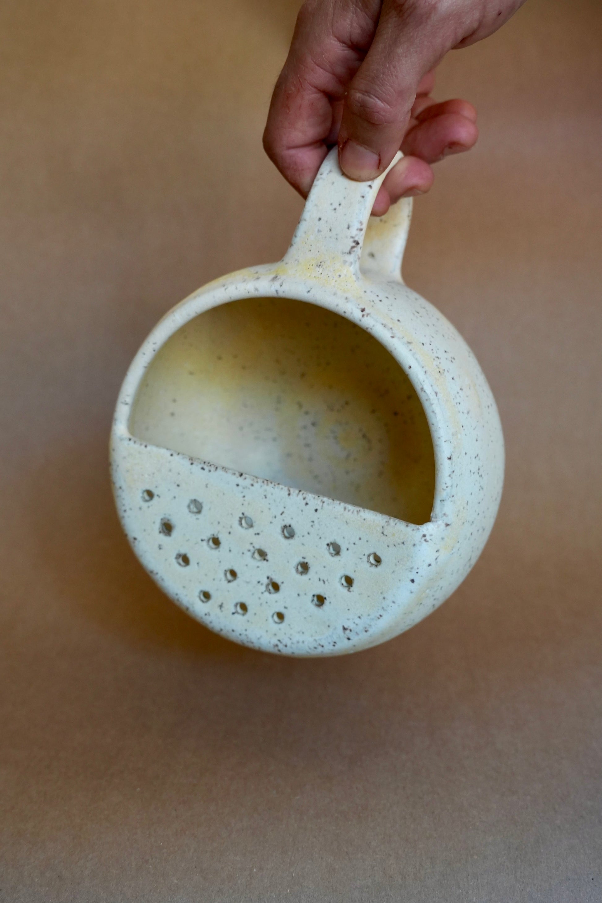 Every Ojai Colander Cup in Creamy Matte is handcrafted, making no two exactly alike. Subtle variations in shape and pattern add to its charm, giving each piece its own unique character.