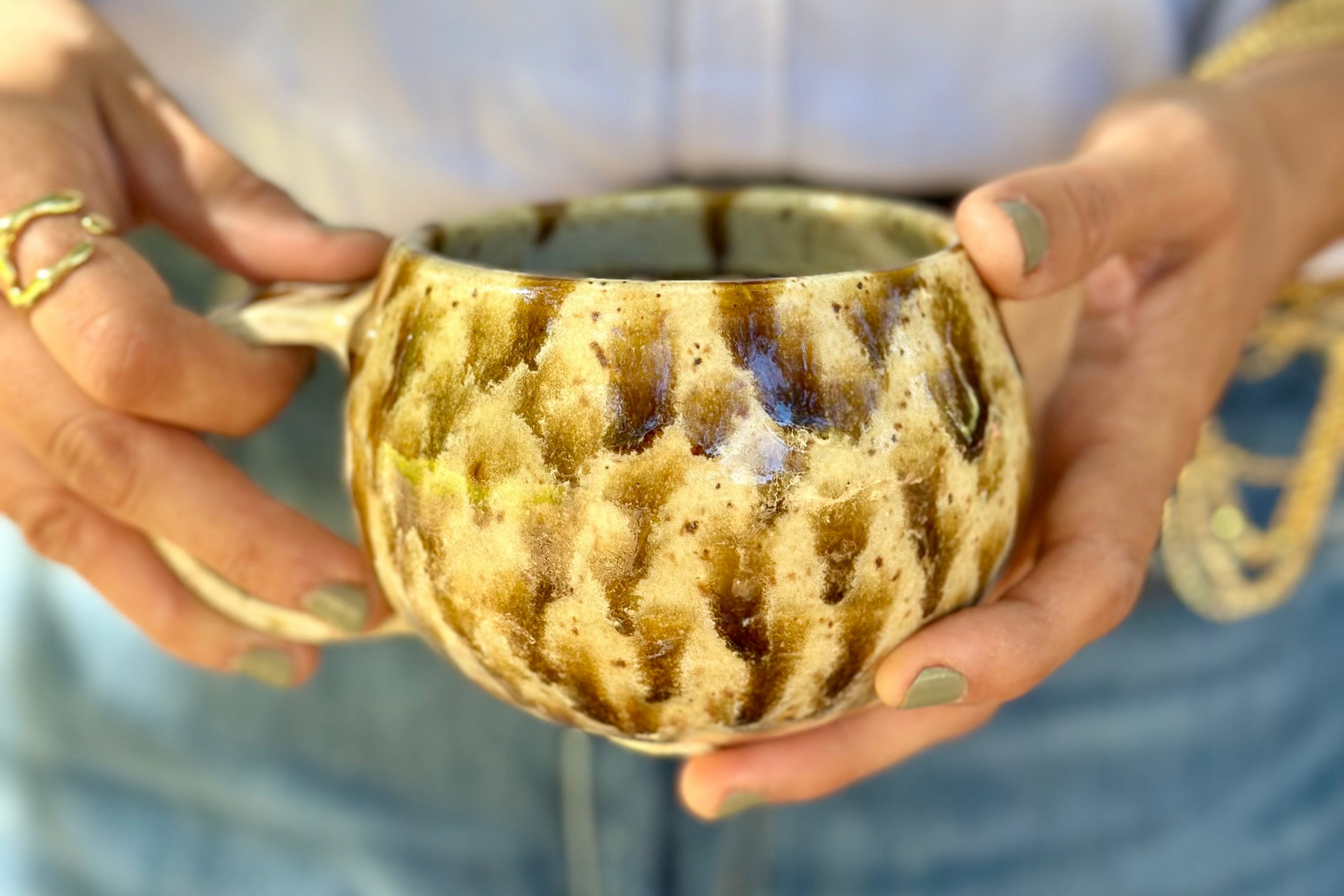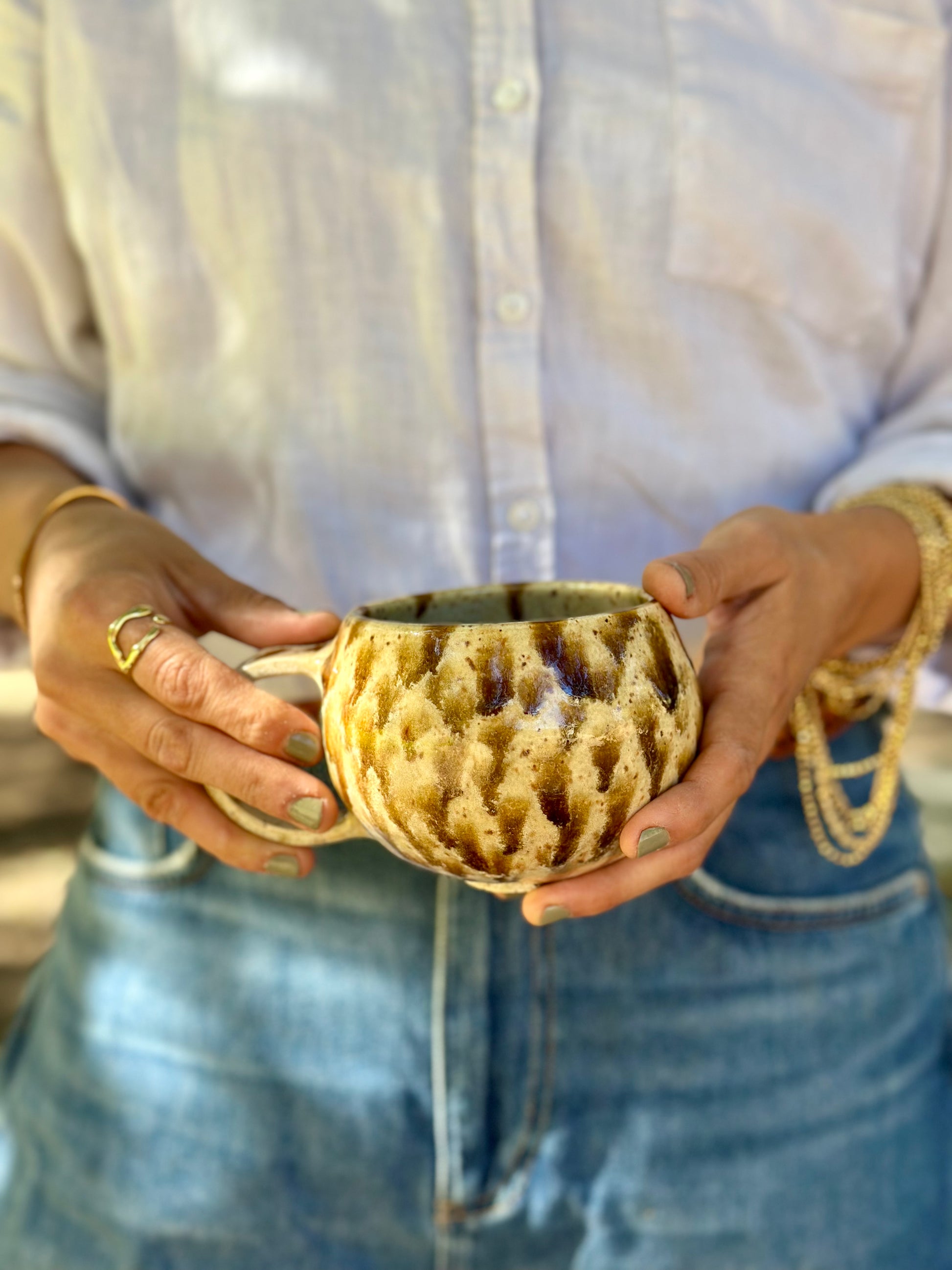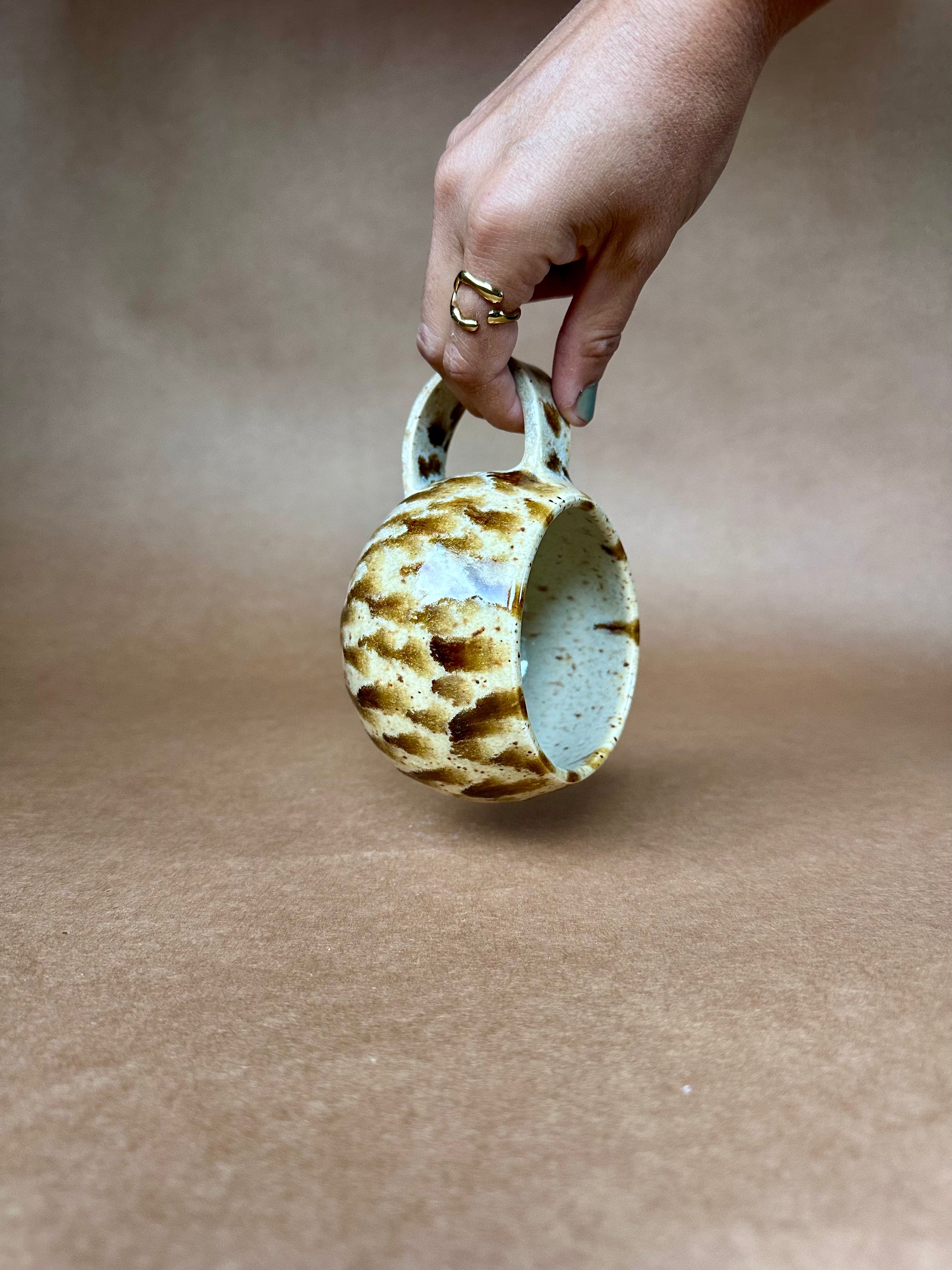 Every Dulce De Leche Mug is handcrafted, making no two exactly alike. Subtle variations in shape and pattern add to its charm, giving each piece its own unique character. Some speckles may appear larger or smaller depending on the batch and where they've been placed in the kiln.