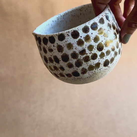 Every Manchita Pouring Bowl set is handcrafted, making no two exactly alike. Subtle variations in shape and pattern add to its charm, giving each piece its own unique character. Some speckles may appear larger or smaller depending on the batch and where they've been placed in the kiln.