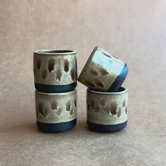 Every Porteño Itty Bitty Cup set is handcrafted, making no two exactly alike. Subtle variations in shape and pattern add to its charm, giving each piece its own unique character. Some speckles may appear larger or smaller depending on the batch and where they've been placed in the kiln.